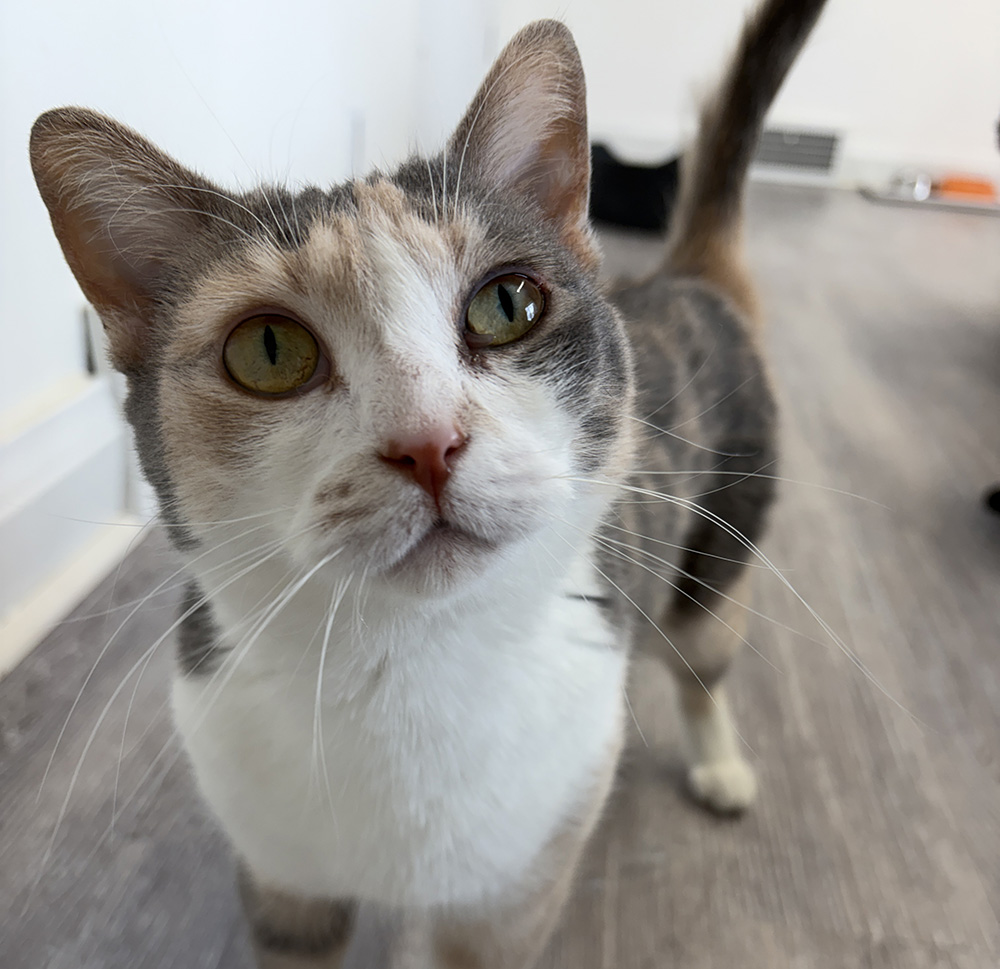 We currently don’t have cats in the gallery as we need to finish painting and prepping the space for our grand opening (TBA, but hopefully end of February). We’ll have more fluffy friends soon.